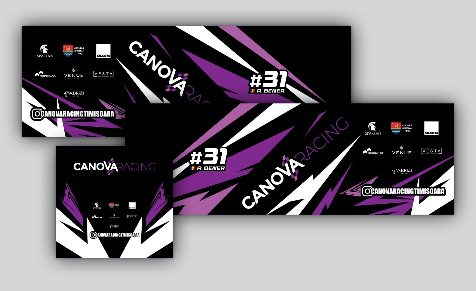 The car trailer branding project for Canova Racing aims to deliver a bold, cohesive visual presence that reflects the team’s dynamism and motorsport professionalism.