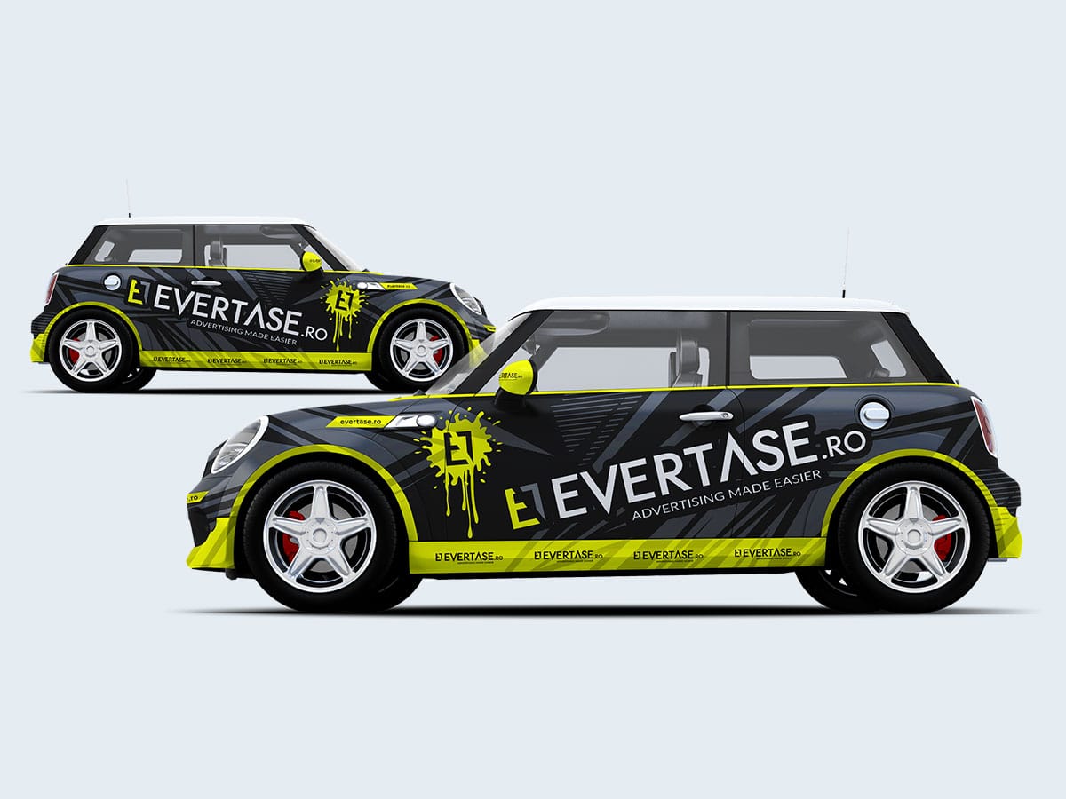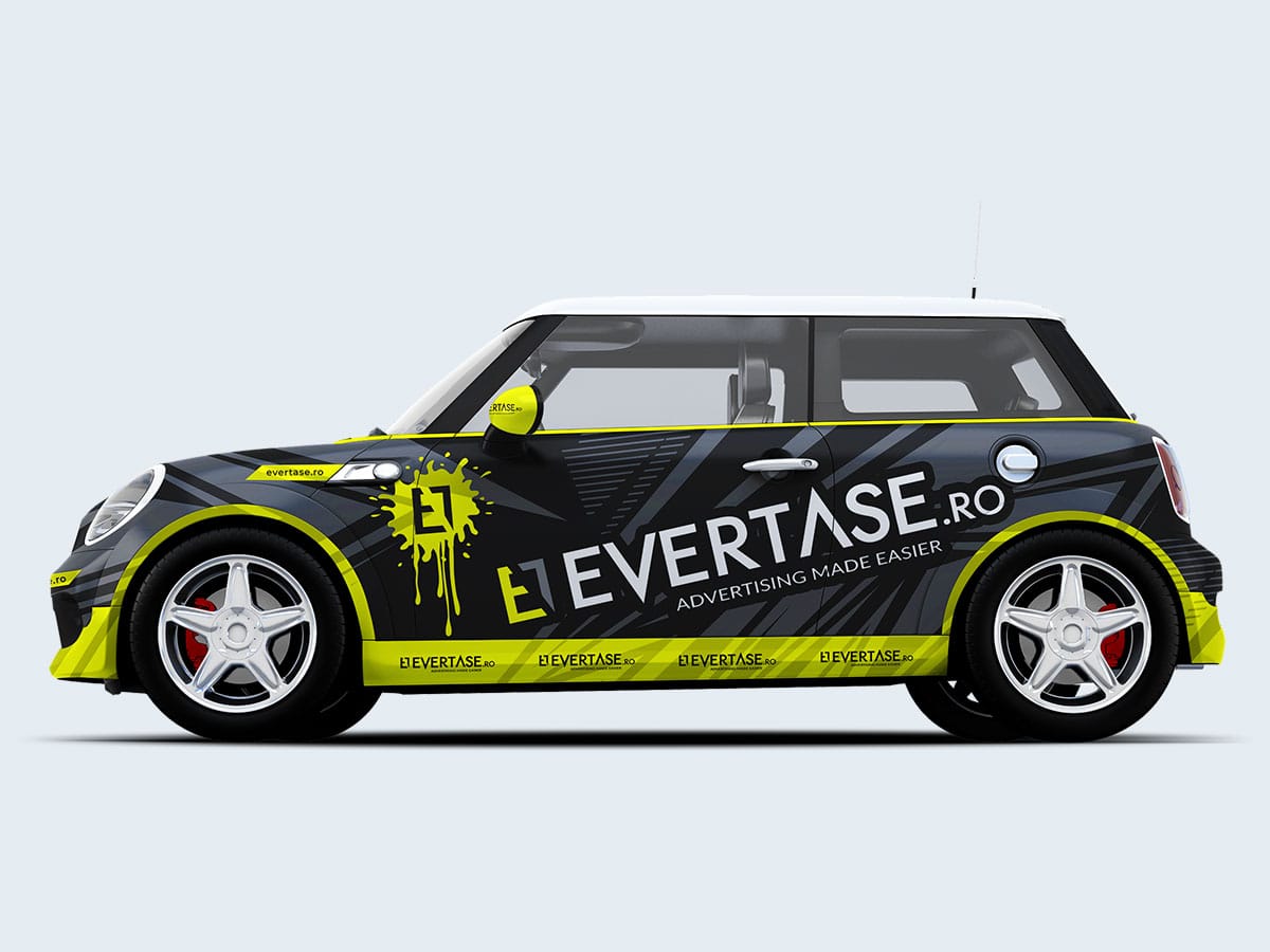 - Integration of Evertase.ro’s brand identity into the car wrap